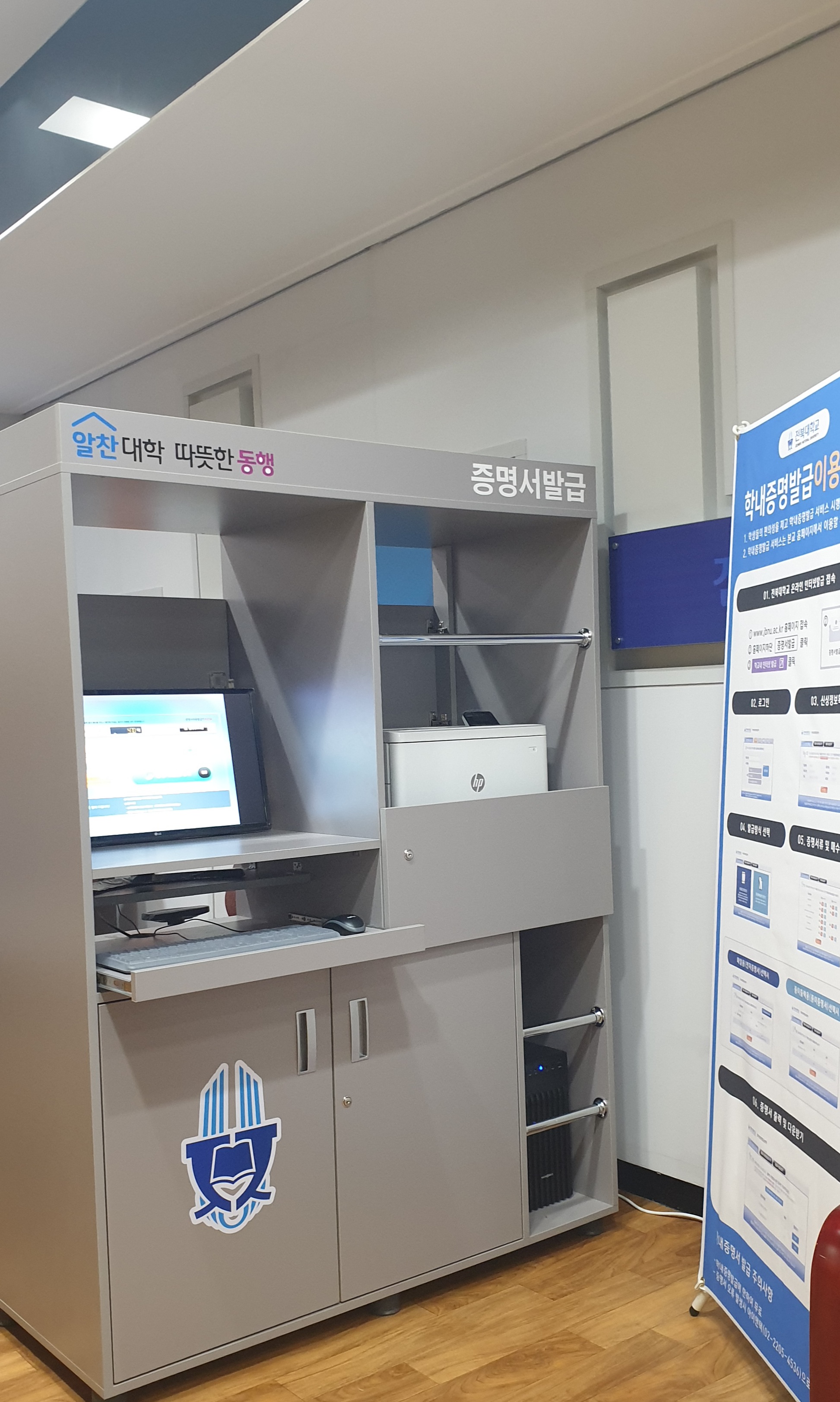 본관 1층 학생 휴게실 내에 학내증명발급장치를 설치하였습니다.